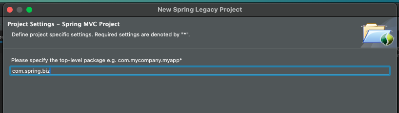 프로젝트 이름을 입력해 주고, Spring MVC Project를 클릭해 준 뒤, Next 버튼을 눌러준다.