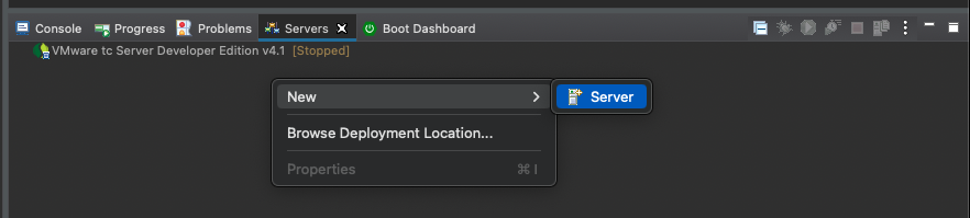 Servers에서 오른쪽 클릭 -> New -> Server를 눌러준다.