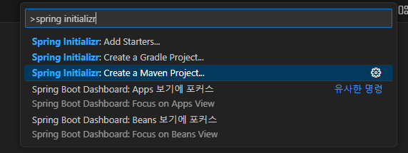 spring initializr 을 입력하고 Maven 프로젝트 생성을 클릭해 준다.