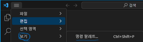 프로젝트를 생성하기 위해 보기(View) -> 명령 팔레트(Command Palette)를 실행하고,