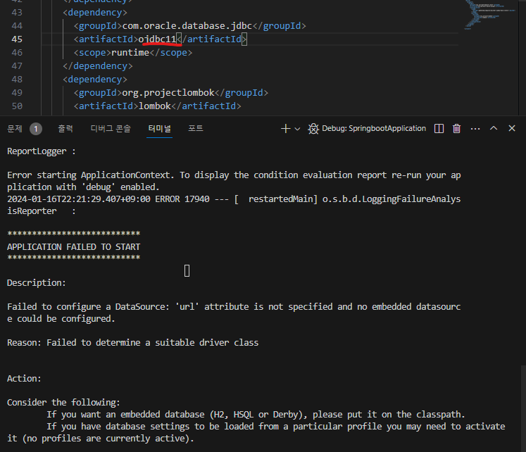 DB 연동을 위해 추가한 오라클 때문에 문제가 발생했다.