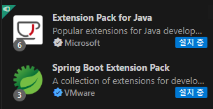 VSCode는 이미 설치가 되어 있으니 VSCode의 Extenstions 메뉴에서 JAVA와 Spring boot를 사용하기 위한 Extension을 설치해 준다.