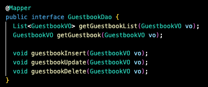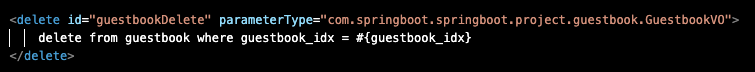 마지막으로 guestbook-mapper.xml 파일에 delete 쿼리문을 작성해 주면 끝.