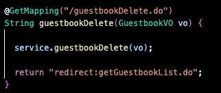 GuestbookController.java 파일에 guestbookDelete.do를 mapping 해주고,