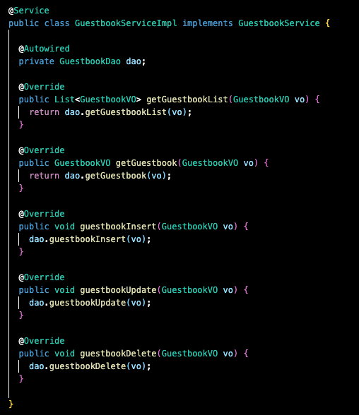 GuestbookServiceImpl.java 파일을 추가해 주고,