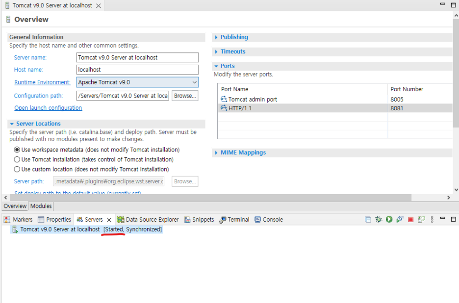 그 외에 HTTP로 되어 있는 port도 오라클 등 다른 port와 겹칠 수 있으니 기존 8080에서 8081 등의 다른 port로 바꿔주었다.