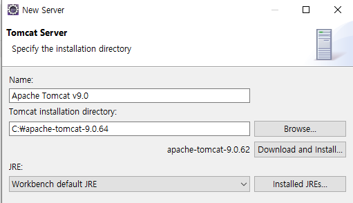 설치한 apache-tomcat의 경로에서 선택.
