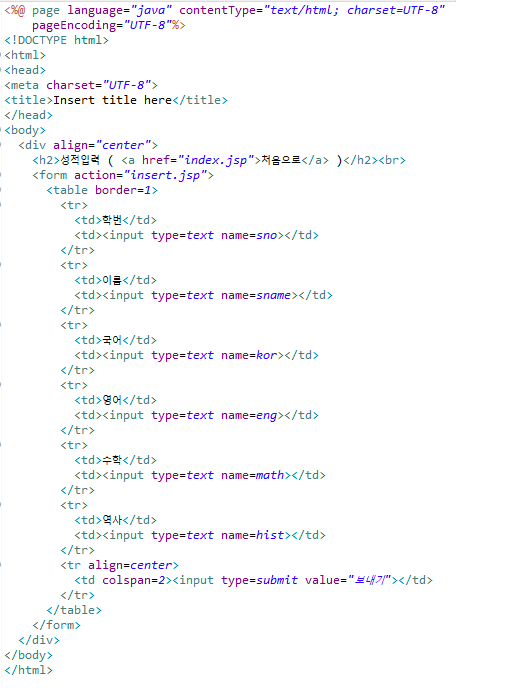 <h2>성적입력 ( <a href="index.jsp">처음으로</a> )</h2><br>