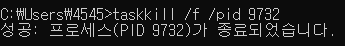 그런 다음 확인한 port를 종료 시키기 위해 아래 명령어를 입력해준다.