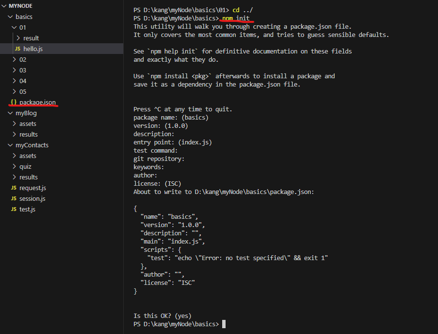 node를 설치하면서 자동으로 설치가 된 npm을 사용해볼 것인데, 패키지를 설치하기 전에 npm init을 통해 초기화를 진행해준다.