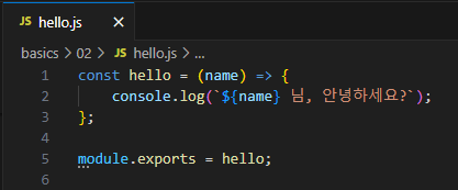 user.js 파일을 생성하여 이름을 할당하는 코드를 작성하고, hello.js 파일을 만들어 인사말을 표시하는 함수를 작성한다.
