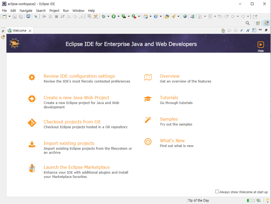 Launch를 누르면 나오는 Welcome 페이지를 닫아준다.