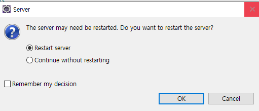 사용 중인 프로젝트에서 톰캣의 실행을 멈추고 다시 실행하면 된다.