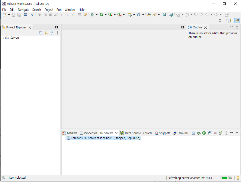 Finish를 눌러주면 Servers에 Tomcat이 생성이 되었고, 실행 버튼을 눌러주면 Start가 된다.