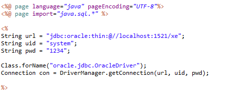 어느 파일이든 DB에 접근하기 위해서는 꼭 사용되는 코드가 있는데, 중복되어 사용되는 것을 막기 위해 dbconn.jsp 라는 파일을 하나 만들어 DB 연동 코드를 넣어주고, 다른 페이지들에서는 이 파일을 import 해서 사용하도록 할 것이다.
