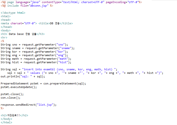 response.sendRedirect("list.jsp"); 가 있기 때문에 저장이 완료되면 바로 list.jsp 파일로 이동하게 된다.