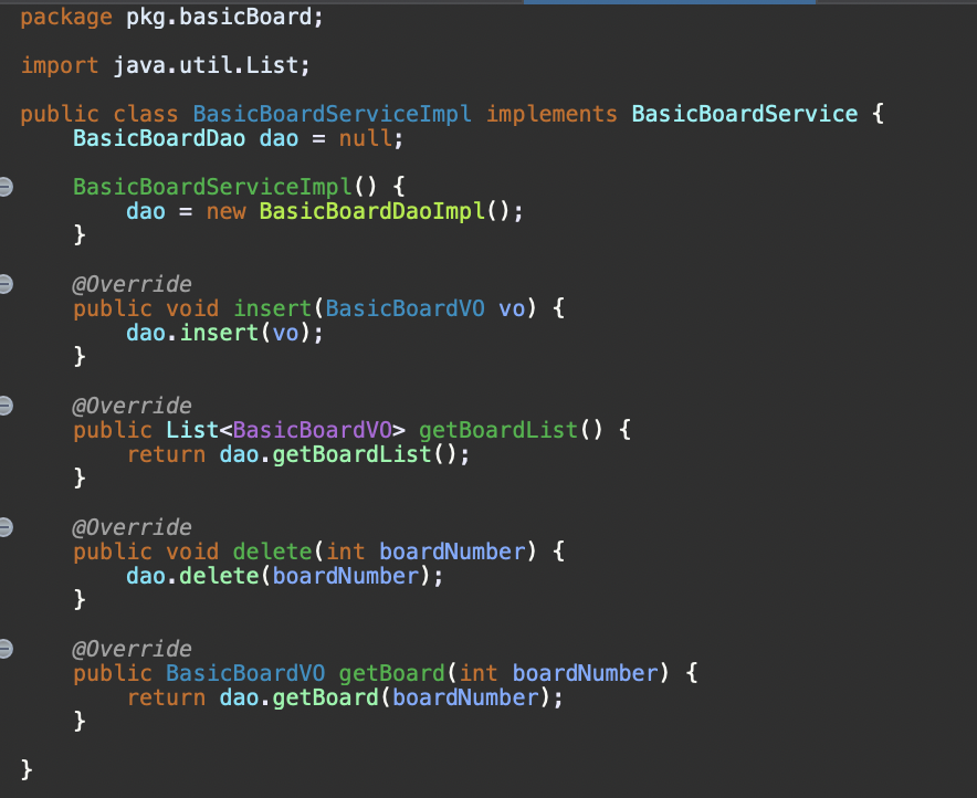 BasicBoardService를 상속받은 BasicBoardServiceImpl에서 dao의 getBoard를 불러주자.