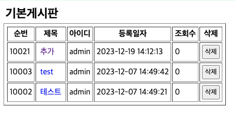 이전 포스팅에서 delete를 추가하여 레코드 삭제를 할 수 있게 되었다.