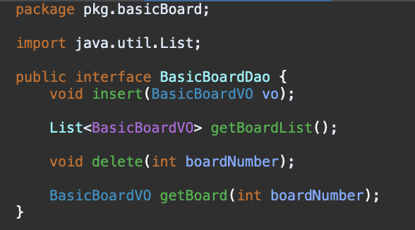 다음으로 BasicBoardDao 에 getBoard를 추가해 주었는데, 참고로 이전에 select는 getBoardList로 변경해주었다.