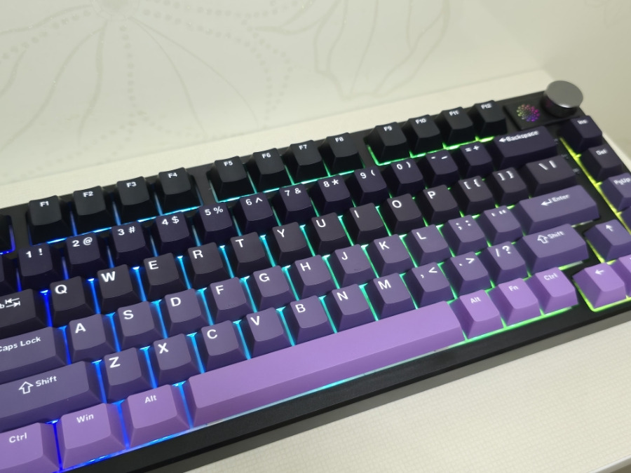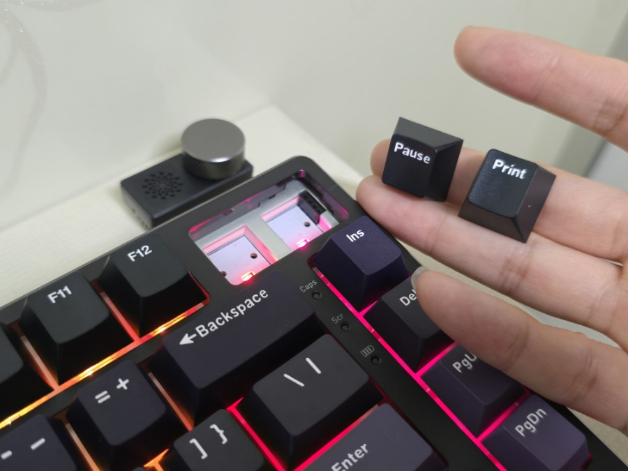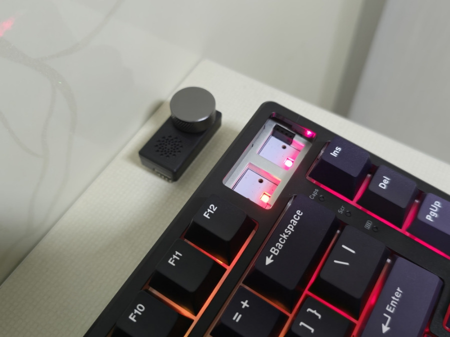 키캡 사이사이에 공간이 있어 그 사이를 뚫고 나오는 광량이 어마어마하고, 계속 보고 있으면 빛 위에 키캡이 떠있는 듯한 신기한 느낌이 든다.